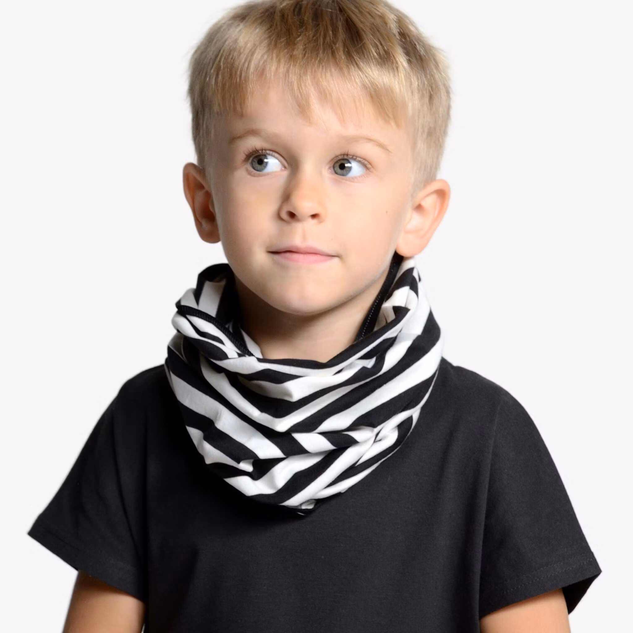 Gör varje dag till ett stilfullt äventyr med Boo Randig Tubhalsduk – den perfekta accessoaren för alla barn som älskar att leka och upptäcka världen med stil!