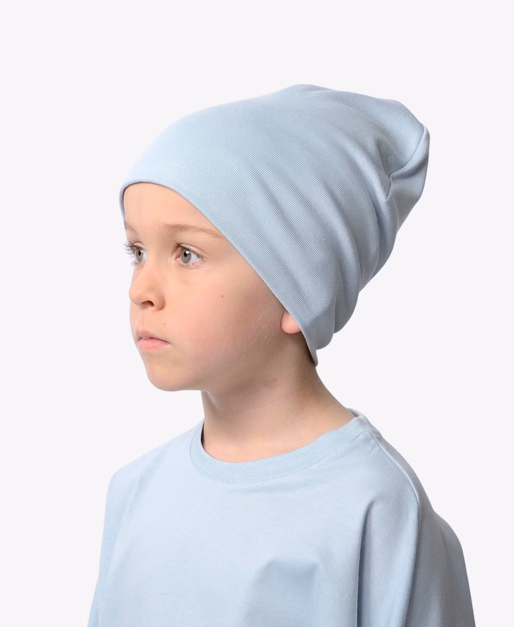 Ljusblå ribbad mössa tillverkad i GOTS-certifierad ekologisk bomull med stretch. Baktill på mössan sitter en etikett med vår logga. En enkel fin mössa i ett fint bomullstyg i bra kvalitet. Denna mössa passar lika bra på tjejer som på killar och är lagom varm att ha tidiga höstar eller på vårkanten.